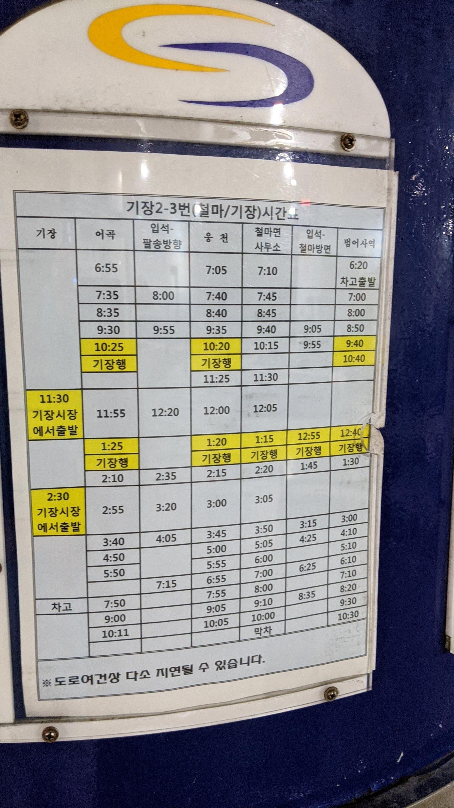 기장8번 시간표